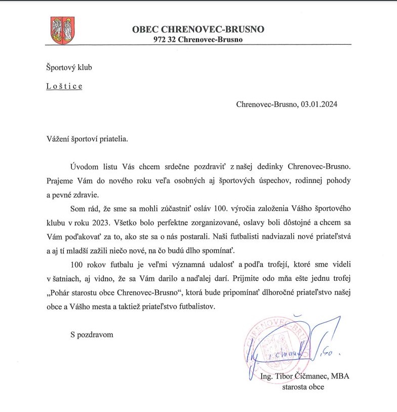 Přejí fotbalisté SK Loštice 1923, z.s.