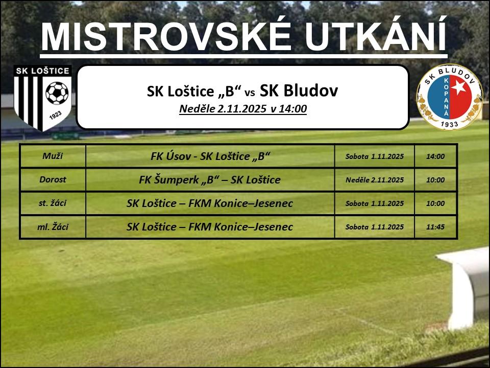 | NE | 14.09. | Muži A | Troubelice | Loštice A | Odloženo | ÚT 28.10.2025 |